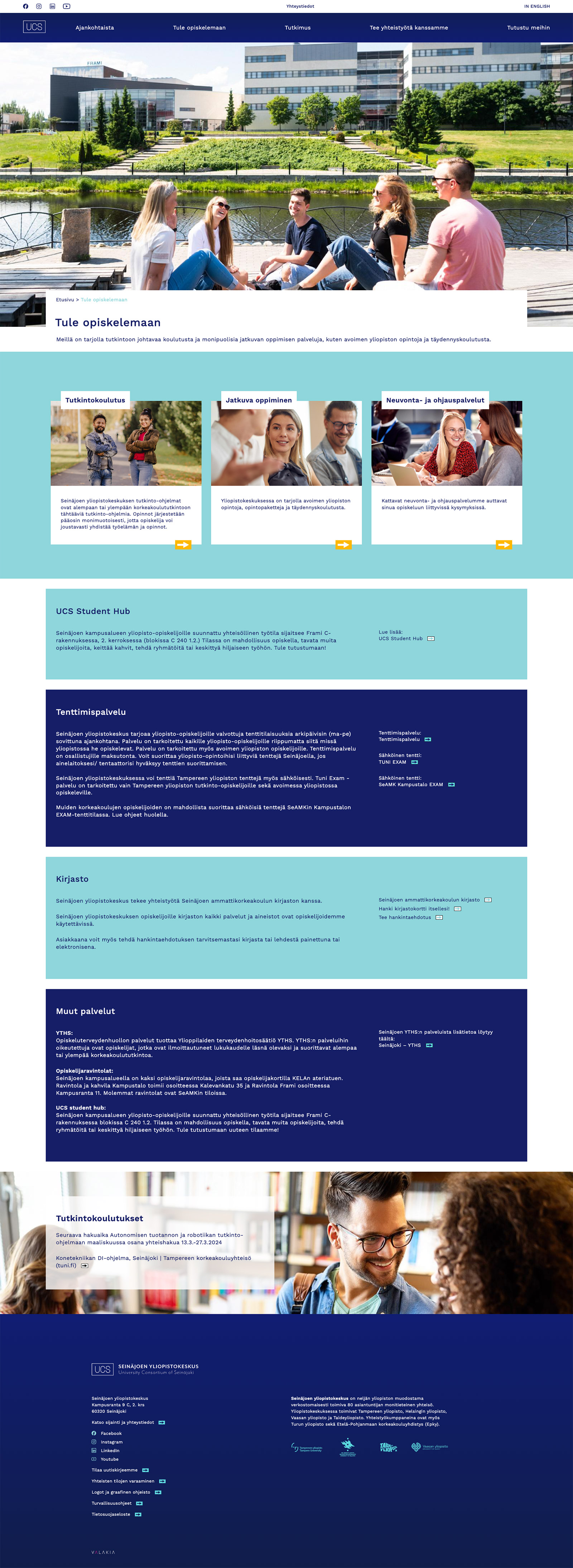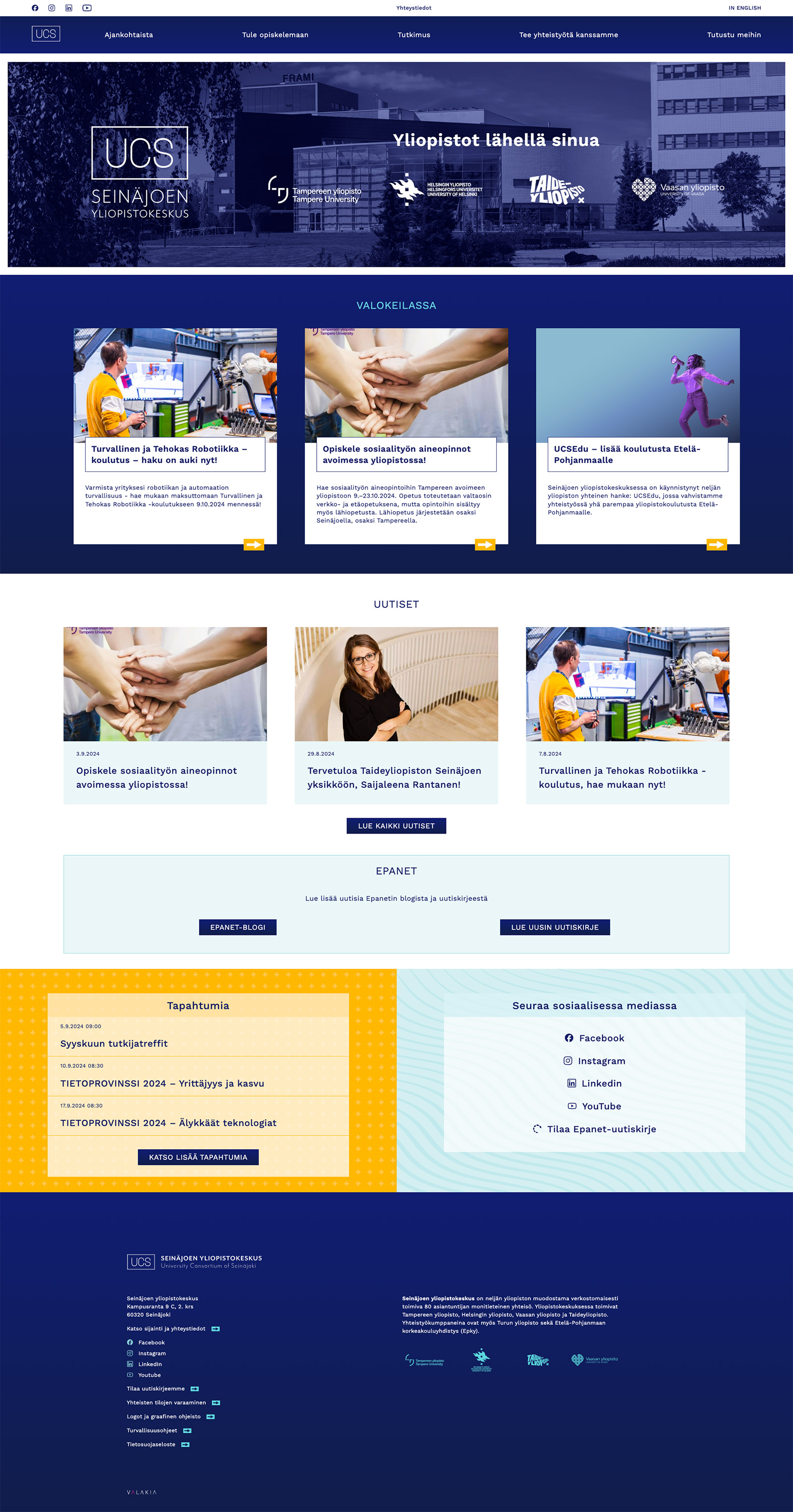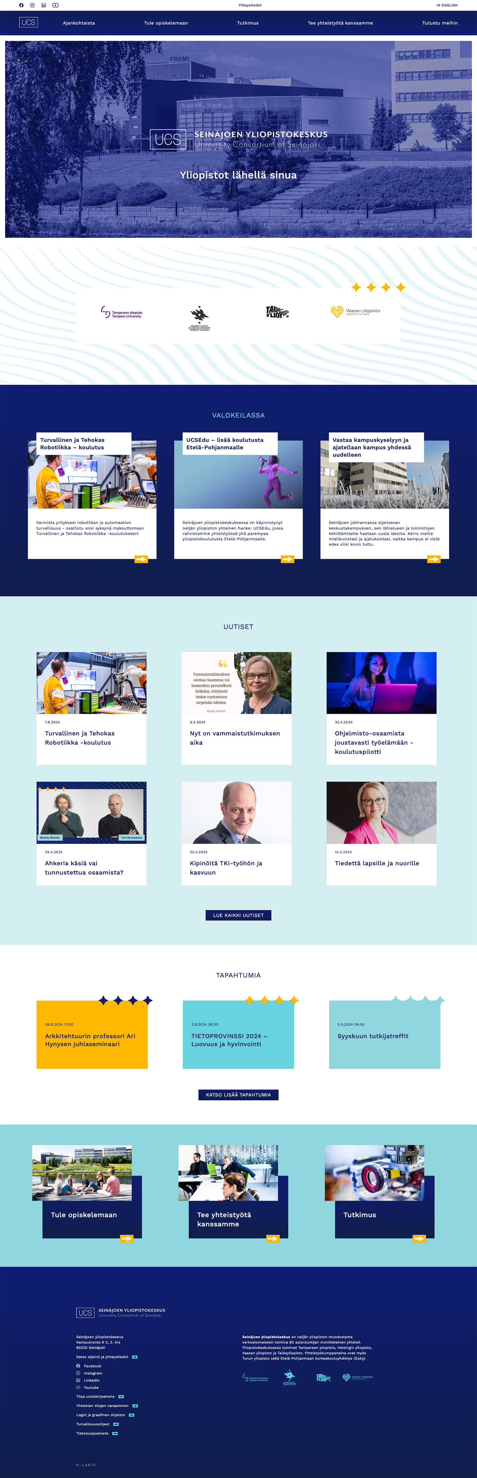 Seinäjoen yliopistokeskuksen sivusto uudistettiin keväällä 2022, ilmeen pohjana käytettiin tuoretta graafista ohjeistoa. Sivustoa päivitettiin etusivun ilmeen ja päivitystoimintojen osalta syksyllä 2024.